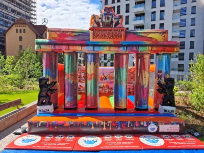 Taucht ein in die Welt der Hüpfburg Bärlin! Diese 5,5 x 5,5 Meter große Spielfläche bietet Platz für bis zu 12 kleine Ab...