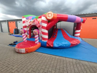 Tauche ein in die süße Welt von "Candyland"! Diese 5.3x5.9 Meter große Hüpfburg bietet Platz für 10 kleine Abenteurer un...