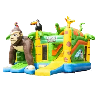 Tauche ein in die bunte Welt von "Animal Kingdom"! Diese riesige Hüpfburg in Tierdesign (5.8x7.3x4.2m) bietet Platz für...