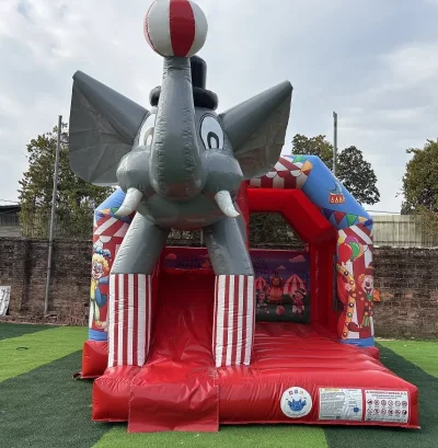 "Tauche ein in eine Welt voller Elefanten-Spaß mit unserer Hüpfburg Elefant! Diese 5.00 x 4.1 x 3.8 Meter große Freude i...