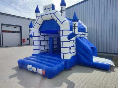 Taucht ein in die Welt des „Blauen Schlosses“! Diese Hüpfburg in Schlossform begeistert mit einer fantastischen Größe vo...