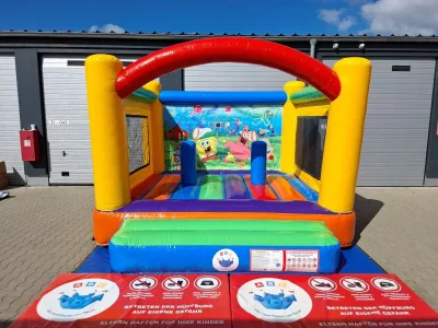 Tauche ein in die bunte Welt der Hüpfburg "Colourful Abenteuerwelt"! Mit ihren 4,00 x 4,00 Metern ist sie der perfekte S...