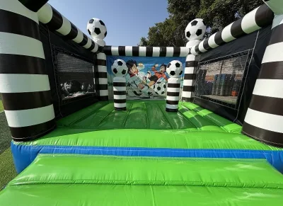 Tauche ein in die spannende Welt des Sports mit unserer Hüpfburg Fußball! Diese aufregende Sprungburg in Größe von 4x4 M...