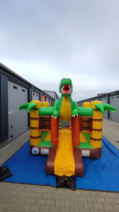 T-Rex Hüpfburg – der wilde Dino für deinen Garten! Sie ist 3,4x3x3 Meter groß und bietet Platz für 5 aufgeweckte Kids. S...