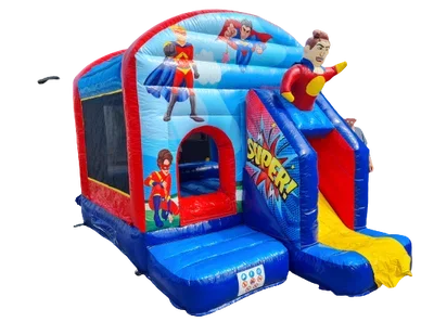Taucht ein in die Welt der Hüpfburg Helden! Diese aufregende Spielwiese für bis zu 5 kleine Superstars bietet atemberaub...