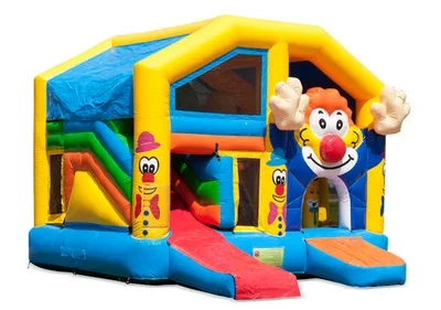 Tauche ein in die bunte Welt des Erlebnis Clowns! Diese 5,50 x 6,00 Meter große Hüpfburg bietet Platz für bis zu 10 klei...
