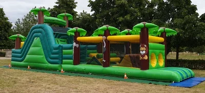 Tauche ein in den **Erlebnis Dschungel** – die aufregende 6x7 Meter große Hüpfburg! Hier finden bis zu 15 kleine Entdeck...