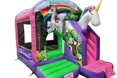 Tauche ein in eine magische Welt voller Spaß und Abenteuer mit unserer Einhorn-Hüpfburg! Diese atemberaubende Festung de...