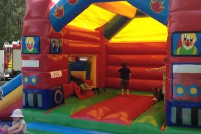 "Lass deine kleinen Helden zu echten Feuerwehr-Stars werden! Unsere 'Kleine Feuerwehr' Hüpfburg (4.20 x 4.70 x 3.20 m) b...