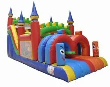 Tauche ein in die bunte Welt der Hüpfburg Spiellandschaft! Diese 8x3 Meter große, farbenfrohe Sprungwiese bietet Platz f...