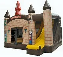 Tauche ein in die Welt der Ritter mit unserer Hüpfburg Ritterburg! Diese 5x6 Meter große Spielwiese bietet Platz für 8 t...