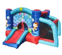 "Tauche ein in die Welt des Sports mit unserer riesigen Hüpfburg 'Sportsworld'! Mit Platz für 12 kleine Athleten und Abm...
