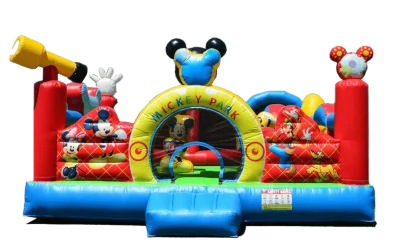 Tauche ein in die magische Welt von Mickey Park! Diese extragroße Hüpfburg (5x4x4 m) bietet Platz für 8 kleine Entdecker...