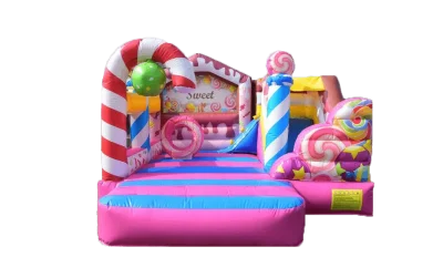 Taucht ein in die süße Welt der 'Candy Bar'! Diese farbenfrohe Hüpfburg in XXL (5x5x4 m) bietet Platz für 8 kleine Abent...