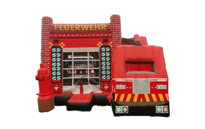 "Lass deine Kinder zu tapferen Feuerwehrleuten werden mit unserer Firefighter Hüpfburg! Diese 5 x 5 Meter große Spielwie...