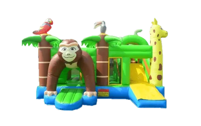 Tauche ein in die bunte Welt der Funky Jungle Hüpfburg! Mit ihren 6.00 x 5.00 x 3.5 Meter ist sie ein echtes Abenteuerpa...
