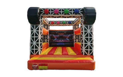 Tanzspaß pur! Springe in die Disco Box, die beeindruckenden 5,5 x 4,5 x 3,5 Meter große Hüpfburg für bis zu 8 kleine Par...