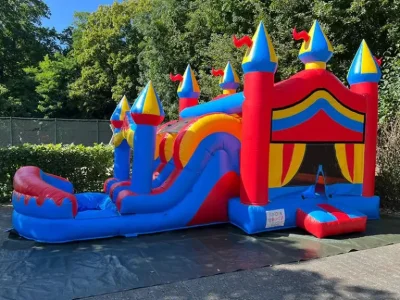 Bunte Schloss Hüpfburg mit Rutsche