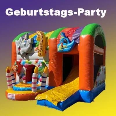 "Feiert den Geburtstag mit unserer 'Happy Birthday' Hüpfburg! Diese 4x4 Meter große, kinderfreundliche Sprungwelt bietet...