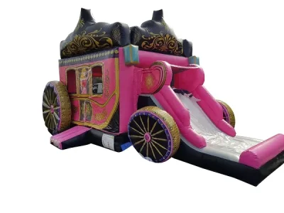 Steigen Sie ein in unser neues Spaß-Abenteuer! Die Kutsche-Hüpfburg, 6x4 Meter groß, bietet Platz für bis zu 10 kleine A...