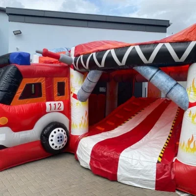 "Lasst die Kleinen zu tapfaren Helden werden mit unserer Feuerwehr-Hüpfburg! Diese 6x6 Meter große Spielwiese bietet Pla...