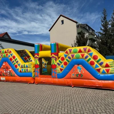 "Lass deine Kinder zu Abenteurern werden auf der Hindernisbahn Parcour 8m! Diese aufregende Hüpfburg bietet Platz für bi...